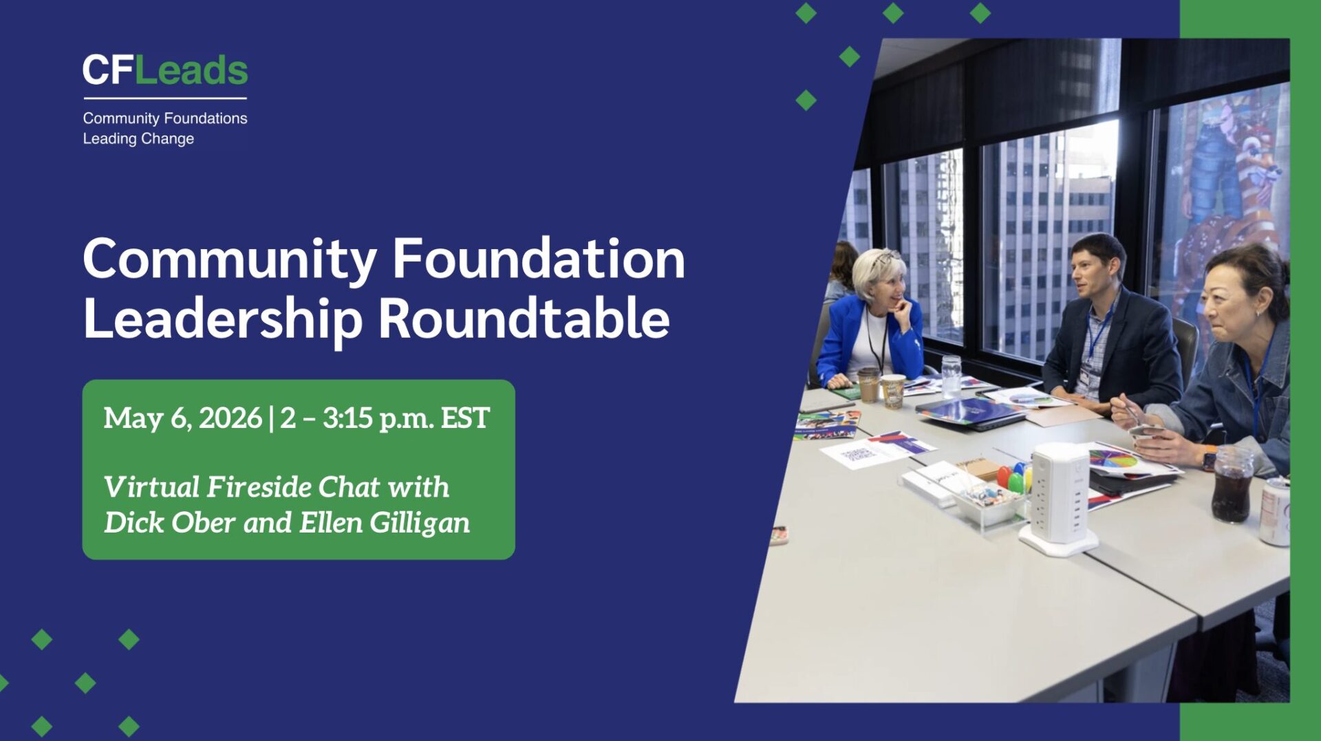 The CFLeads Community Foundation Leadership Roundtable is a space for connection, reflection, and shared learning across our network. In this session, we will be joined by Dick Ober, President & CEO of the New Hampshire Charitable Foundation, and Ellen Gilligan, former President & CEO of the Greater Milwaukee Foundation. This conversation will explore what it means to lead with purpose in a changing environment – offering perspective on community leadership, field-building, and the role of community foundations in advancing long-term impact.